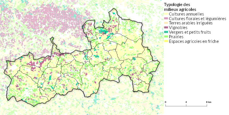 Répartition des différents types de cultures installées sur le territoire :