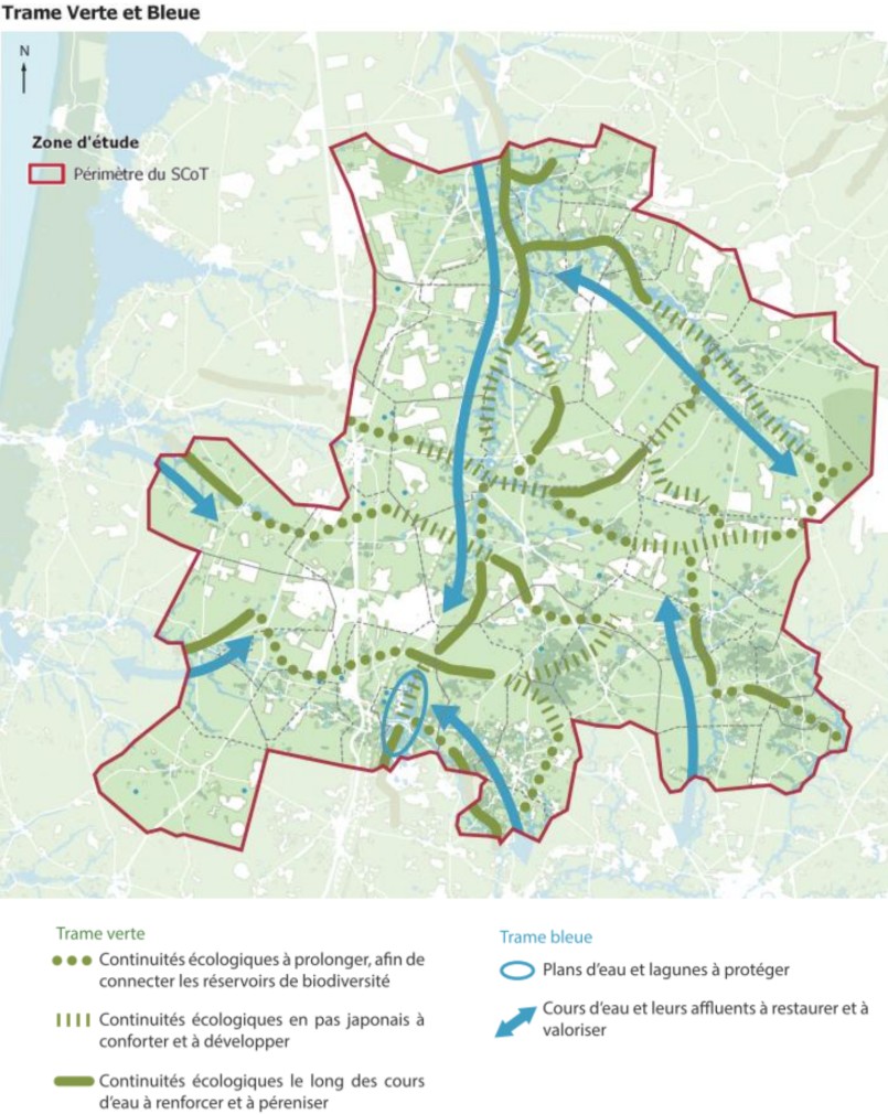 Cartographie de la Trame Verte et Bleue issue des documents du SCOT de la Haute Lande :