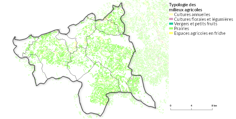 des prairies consacrées à l’élevage (les productions animales représentent 1/3 de l’agriculture en Nouvelle-Aquitaine)