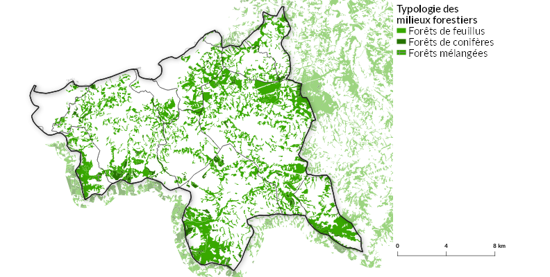 L’intercommunalité est couverte par 29.79 hectares de forêts disparues entre la période du minimum forestier, vers 1850 et les années 2010-2020, soit 10.75 % du territoire.