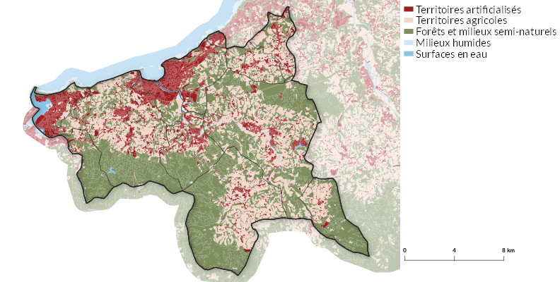 Les superficies artificialisées en Nouvelle-Aquitaine (notamment concentrées dans la métropole bordelaise et autres communautés d’agglomération) continuent de s’accroître et couvraient en 2015, 788 520 hectares soit 9,3 % du territoire régional.