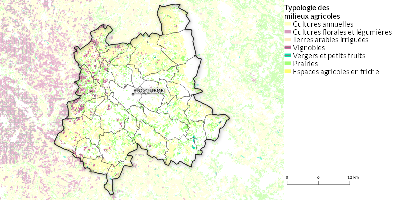 des zones de plaines largement utilisées par des grandes cultures (plus de 1 million d’hectares sur le territoire - majoritairement du blé et du maïs)