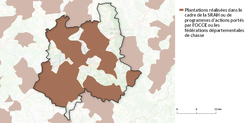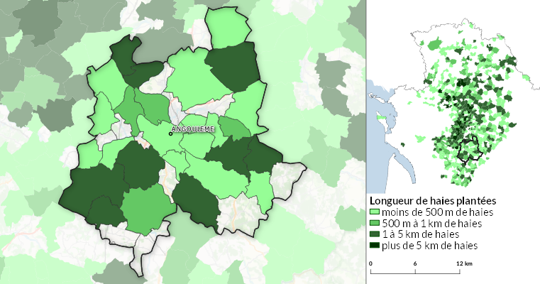 N.B. : L’absence d’informations de plantation ne signifie pas qu’aucune action n’a eu lieu sur votre territoire, des plantations ont pu être réalisées dans le cadre de programme de plantations du Pays du Bocage Bressuirais, du Pays Thouarsais, du Pays de Gâtine, du Pays des Six Vallées, du Pays Montmorillonnais, du Pays Loudunais ou encore dans le cadre du programme Programme d’Entretien et de Valorisation de l’Arbre (EVA) du département de Charente-Maritime