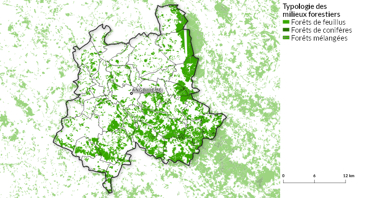 une large présence de feuillus (62 %), essentiellement chênes et châtaigniers